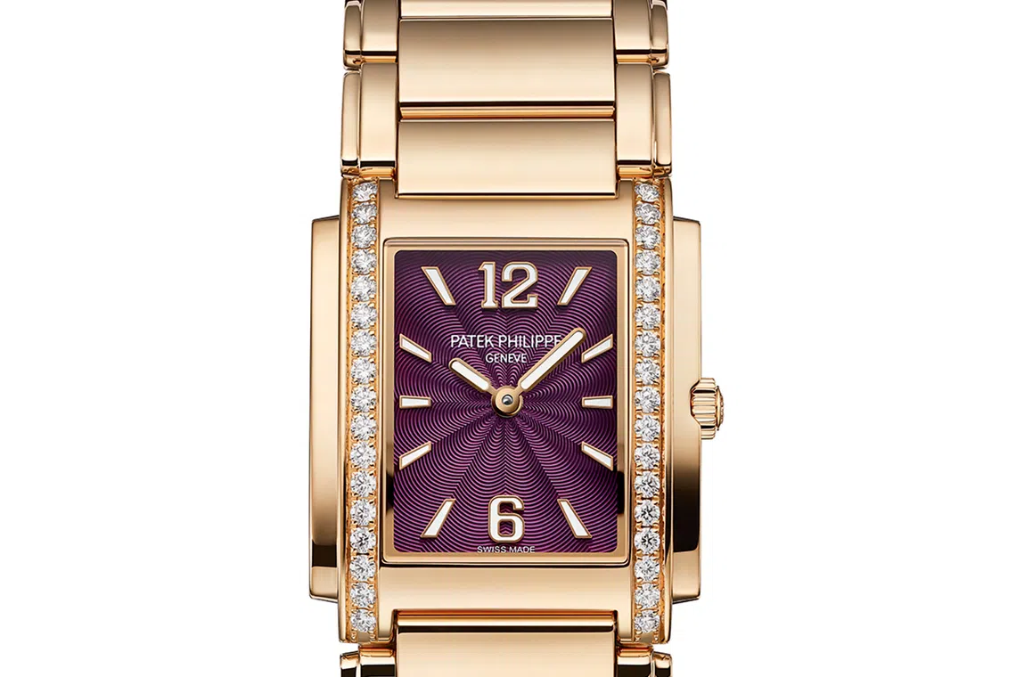 First launched in 1999, this cuff-style watch identified by a highly refined dial is the first women’s watch in Patek Philippe’s collection, the Twenty-4. To celebrate its 25th anniversary in 2024, a new purple dial was made specially for the occasion.