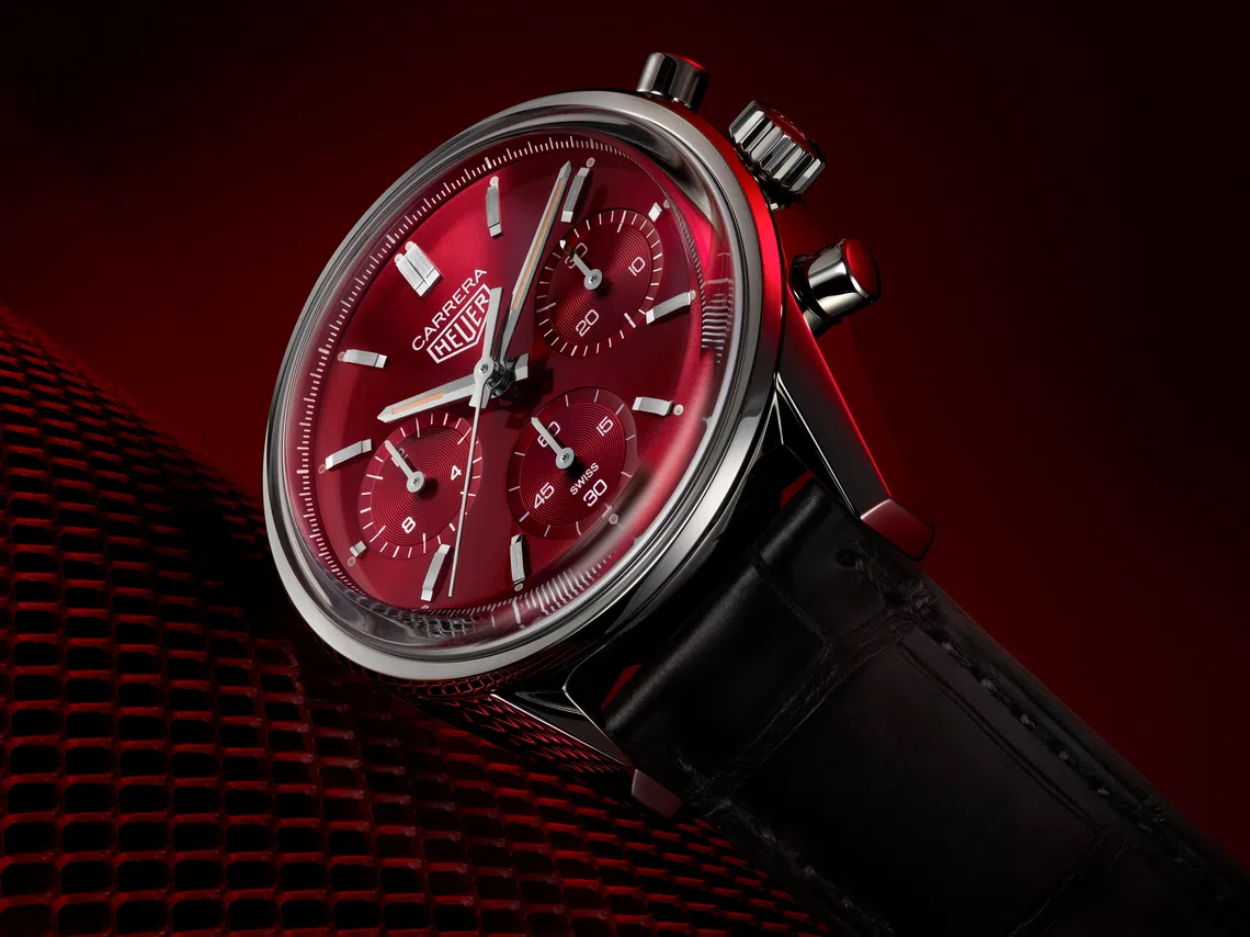 Red is core to TAG Heuer’s identity, but never has the colour come to cover the entire dial as it does on its new watch. It’s modelled on the same pure, understated aesthetic that has made the Heuer Carrera, first designed in 1963, the brand’s signature and most refined sports chronograph.