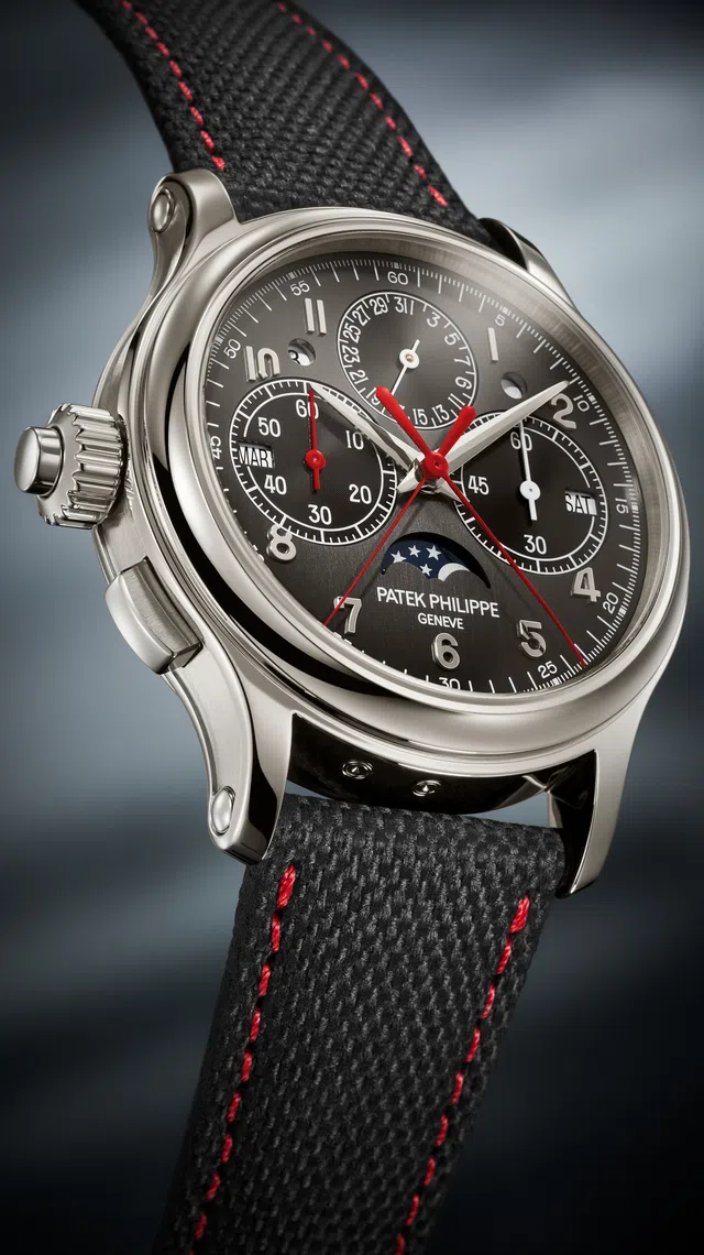This is, however, the first time Patek has attempted a lefty split-seconds chronograph that also has a perpetual calendar.