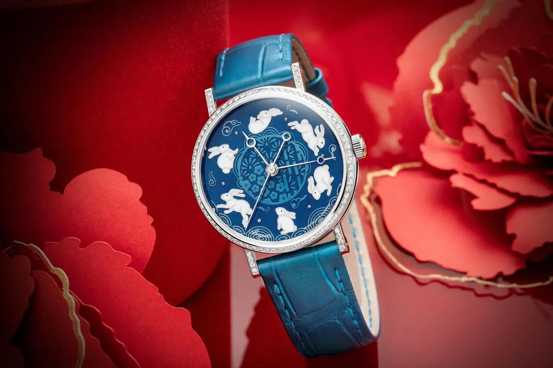 Piaget only began celebrating Chinese New Year 10 years ago and this makes the Altiplano Rabbit its first for this zodiac animal. The ultra-slim mechanical timepiece showcases two white rabbits in Grand Feu cloisonne enamel, which requires a specialised artisanal technique that depicts each rabbit in amazing detail.