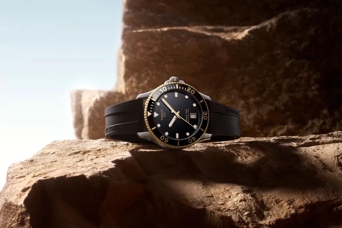 Metal bracelets are offered with the black and blue models, while the black-and-gold option is fitted with a rubber strap. But if you don’t want the standard options, Tissot’s quick strap change system allows you to personalise your watch. No tools are required, just clip out and clip in the strap of your choice.