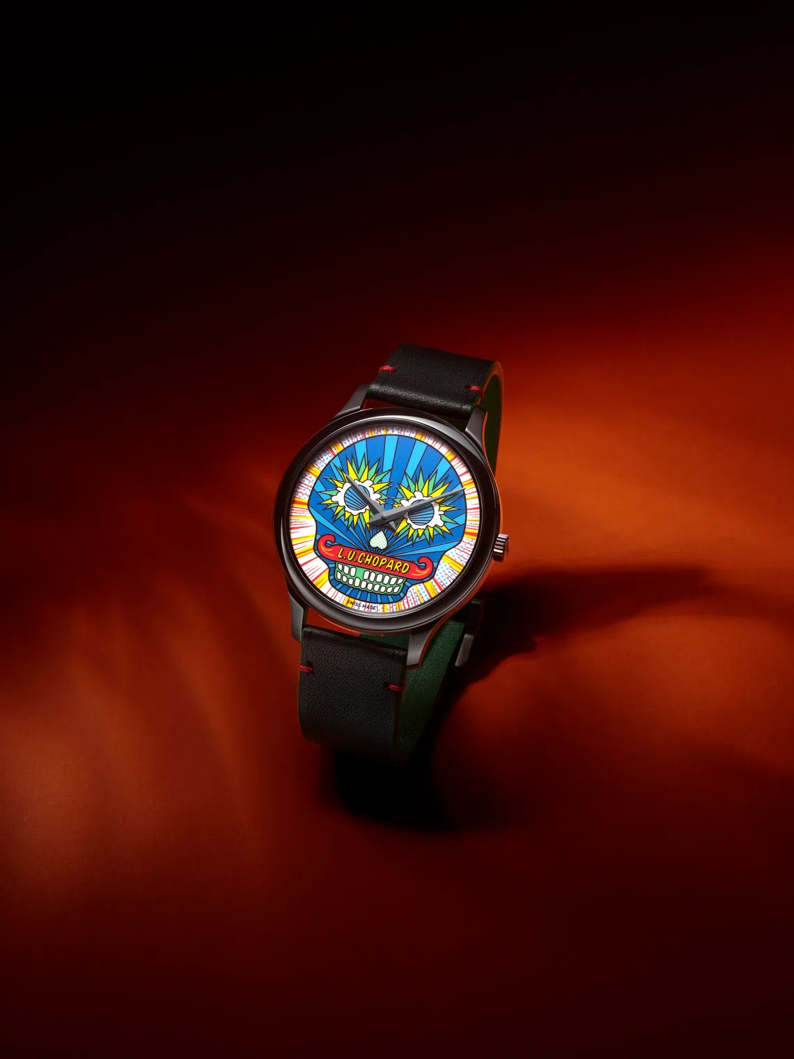 At the heart of this 25-piece limited edition timepiece is “a vivid, pop art-inspired Mexican calavera”. This skull symbol that’s linked to the annual festival is presented in bright flashes of blue, red, orange, green and yellow, framed by a slim (just 7.2mm in height) 40mm black bead-blasted, DLC-coated stainless-steel case. The watch is powered by an in-house hand-finished self-winding movement with power reserve of 58 hours. Price: S$15,700