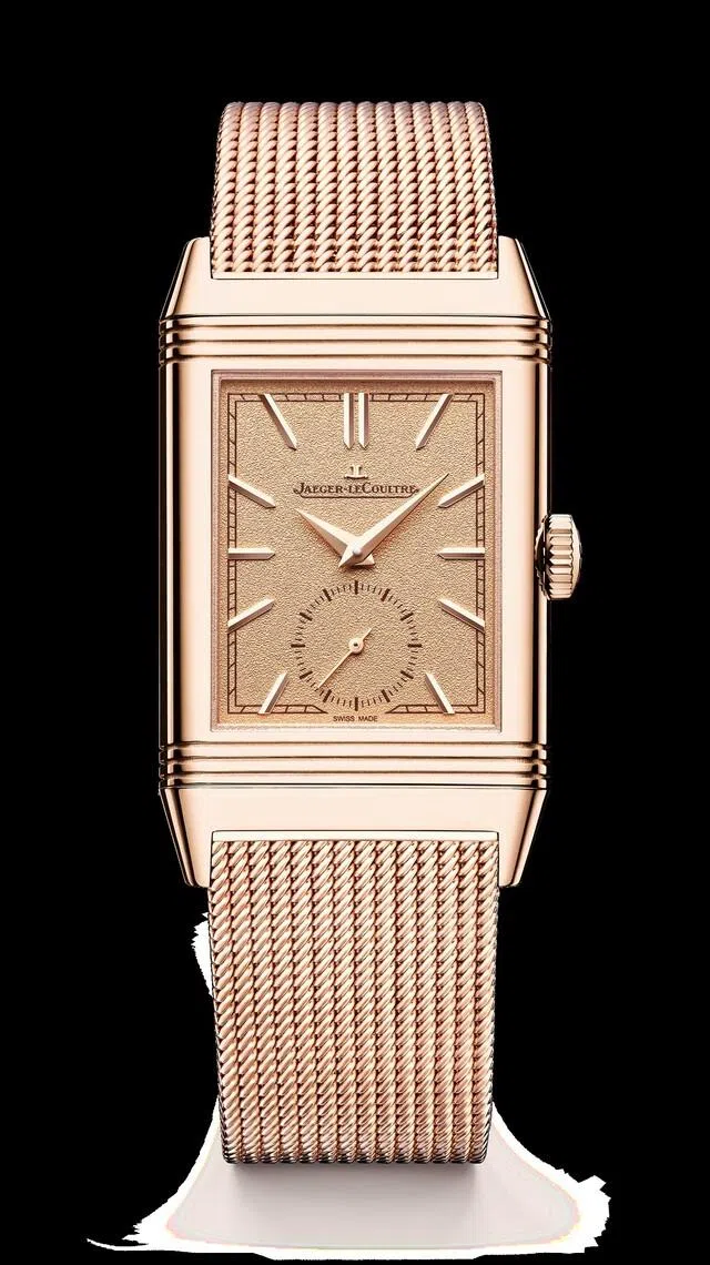 His Jaeger-LeCoultre Reverso Tribute Monoface “Or Deco” comes in 18-karat pink gold, paired with a Milanese link bracelet and a grained dial that mirrors the warmth of the case. The tones also perfectly complemented the X-Men star’s newly dyed blonde hair.