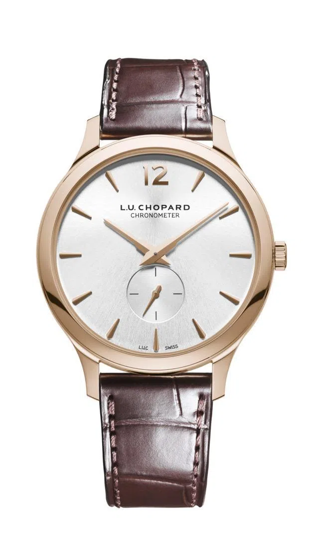 Captain America chose an ultra-thin LUC XPS in 18-karat rose gold from Chopard to keep things simple yet elegant.