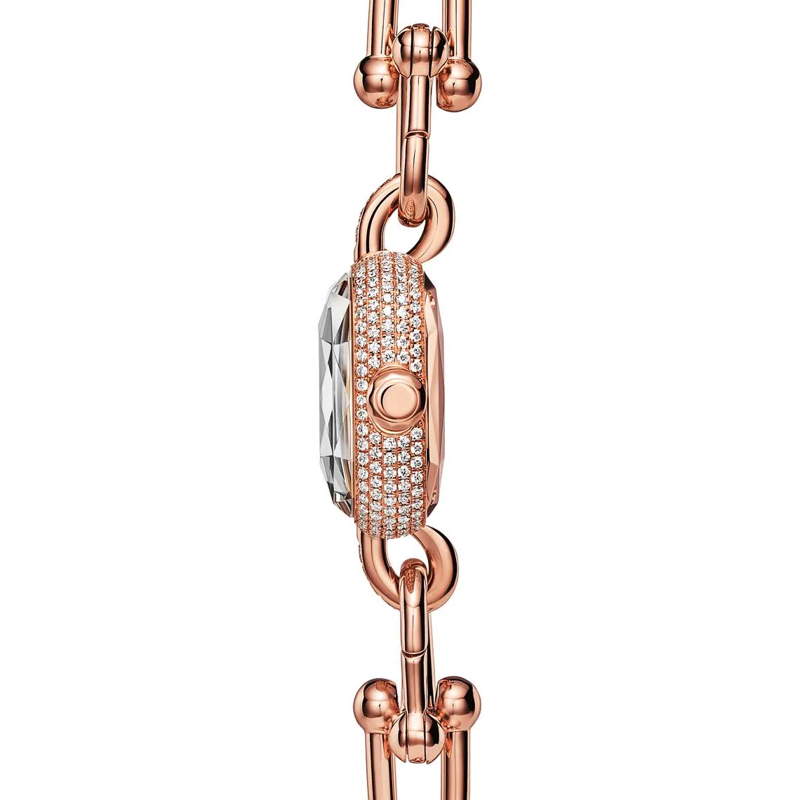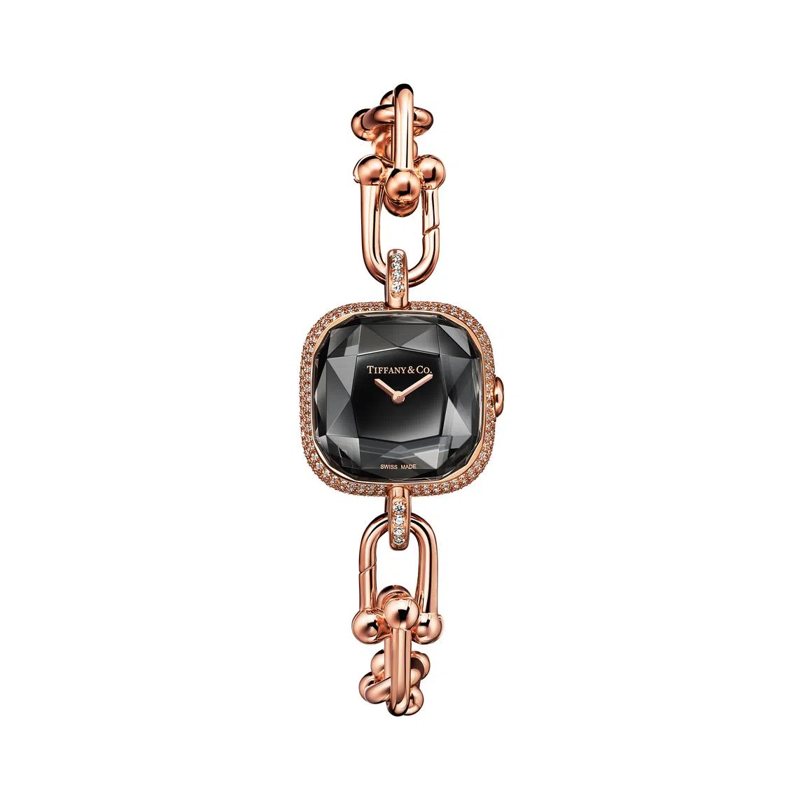 Staying with the clean but statement theme are Tiffany’s HardWear watches. These feature the house’s iconic HardWear gauge links as well as a cushion-shaped case and faceted sapphire crystal that evoke the shape of the legendary Tiffany Diamond.