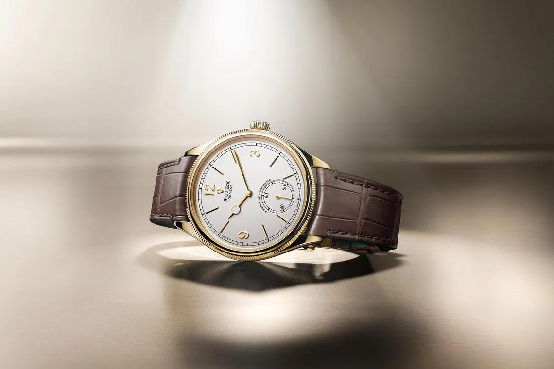 Flip the watch over and a Rolex state-of-the-art automatic movement comes into view through the transparent case-back; the movement boasts five patent applications.The Perpetual 1908 is mounted on an alligator strap equipped with a Dualclasp, a double folding clasp, in yellow or white gold. Price: S$30,800