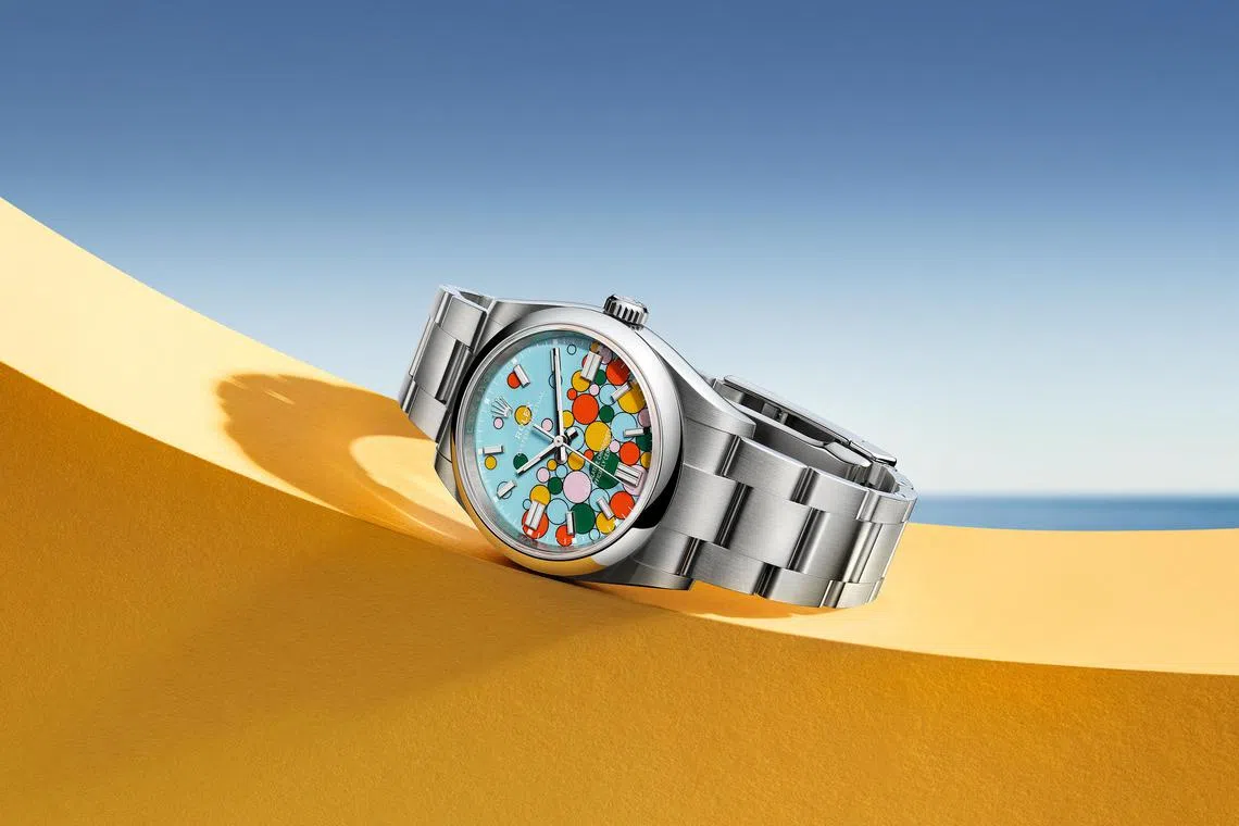 Watch buyers went wild in 2020 when Rolex rolled out Oyster Perpetual watches with candy pink, turquoise blue, yellow, coral red or green dials. Rolex has returned with new models, this time with a dial dotted with many coloured bubbles uniting the same five colours. This “effervescent, euphoric design”, the work of “masterful technique”, is given the name “Celebration”. It’s available in 31mm, 36mm and 41mm Oystersteel versions. Price: S$8,900 (41mm), S$8,450 (36mm), S$7,900 (31mm)