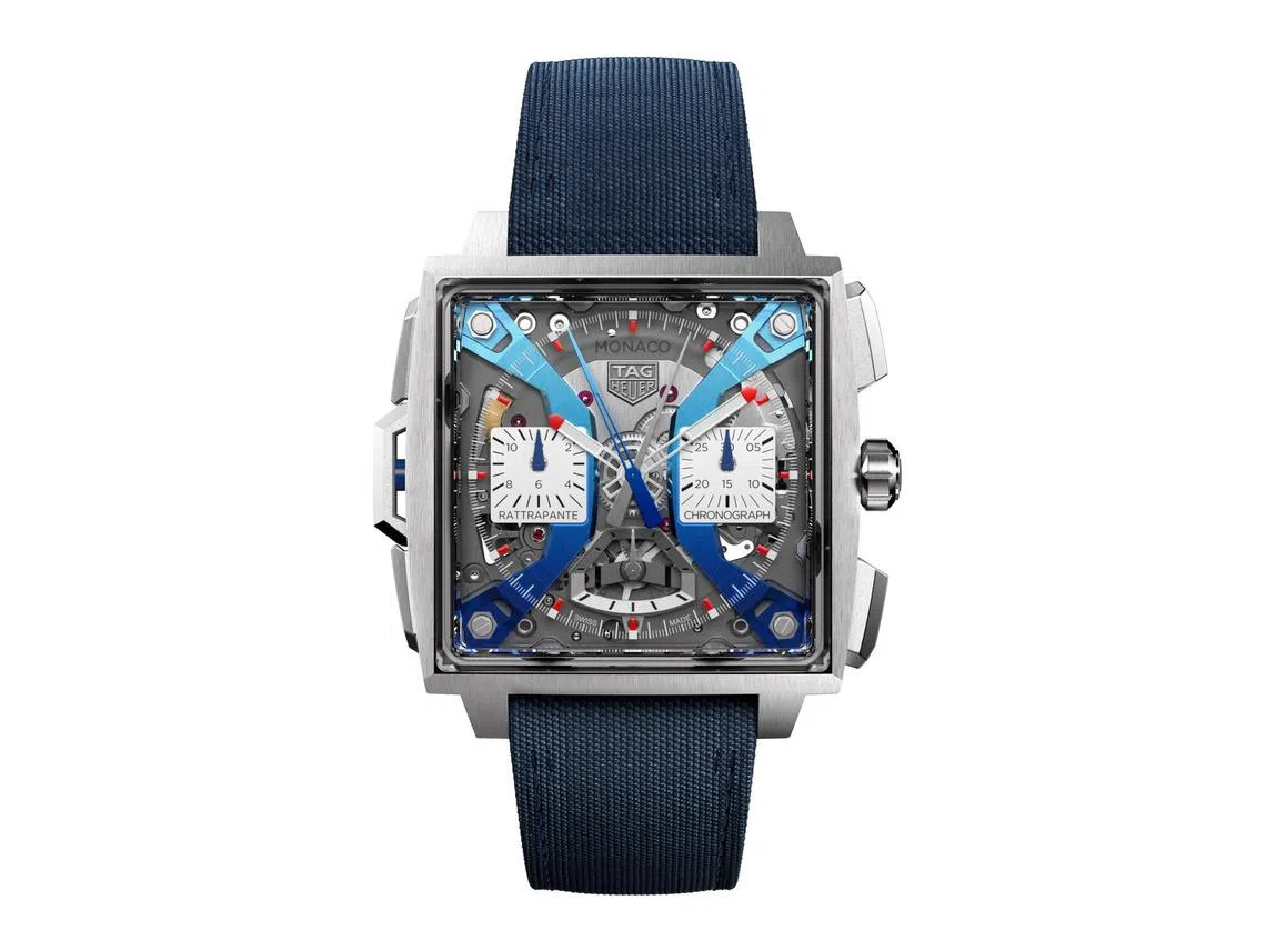 The Split-Seconds Monaco’s racing DNA is put on display in the two colours that the watch comes in: Original Blue pays tribute to the classic Monaco design, while Racing Red is reminiscent of Steve McQueen’s Le Mans watch.