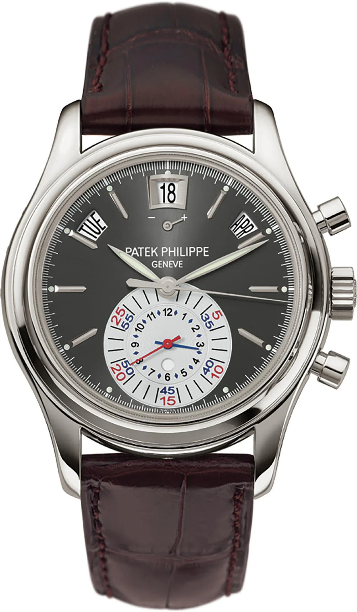 Patek Philippe’s earlier chronographs ran on movements made by others. The Ref 5959, a split-seconds mono-pusher chronograph unveiled in 2005, was the first chronograph with a Patek Philippe-made movement; the 33 mm wide watch was, for many years, the thinnest split-seconds chronograph ever built.
