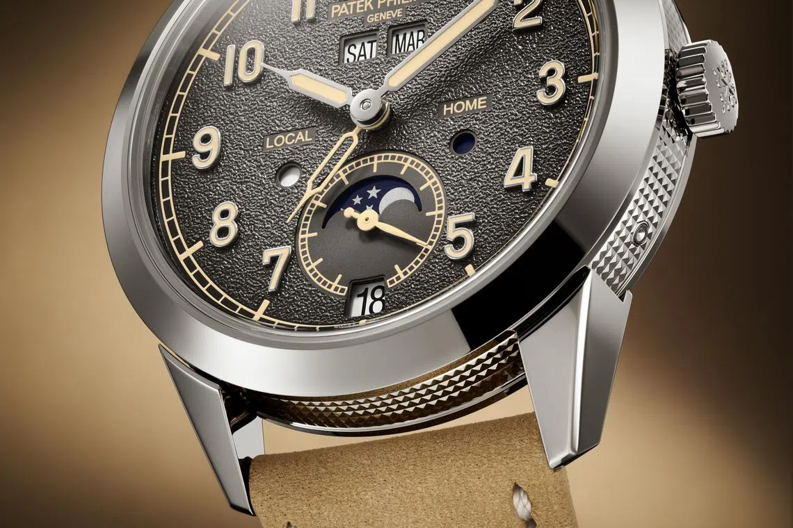 To mark this feat, a new Calatrava case has also been created where it is guilloched with the hobnail pattern around its entire flank. The charcoal grey vintage dial is inspired by old photo cameras and this exclusive design is also used on the Ref. 5226G-001 Calatrava (powered by the self-winding Caliber 26-330 S C movement) which doesn’t come with the additional complications. Price: S$101,300