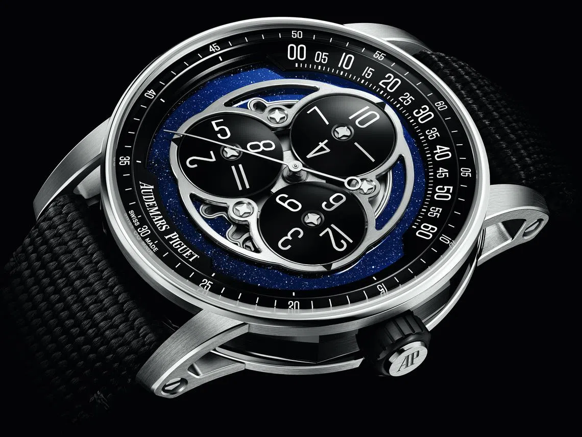 Code 11.59 by Audemars Piguet Starwheel is a horological complication that first appeared in the 17th century. The “wandering hours” was a timepiece where time was displayed by “a system of satellites that gravitates along a minutes scale in the form of an arc”. It didn’t catch on and dropped out of sight. Audemars Piguet tried to revive the system in 1991 and called it the Starwheel, apparently with little success. Now it’s hoping to give the Starwheel a new lease of life with its Code 11.59 collection.