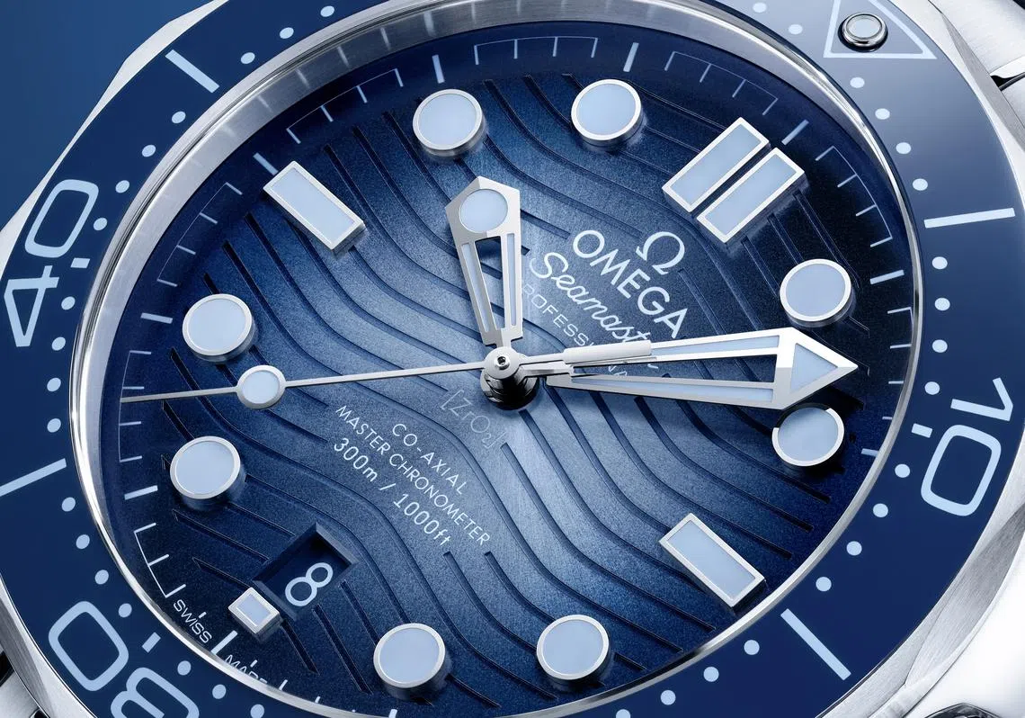 Powered by Omega’s workhorse Calibre 8900, the watch boasts a sun-brushed dial with a gradient effect, like the surface of the water glinting in sunlight. In the dark, the hands and indexes glow light blue due to the use of a unique Super-LumiNova.
