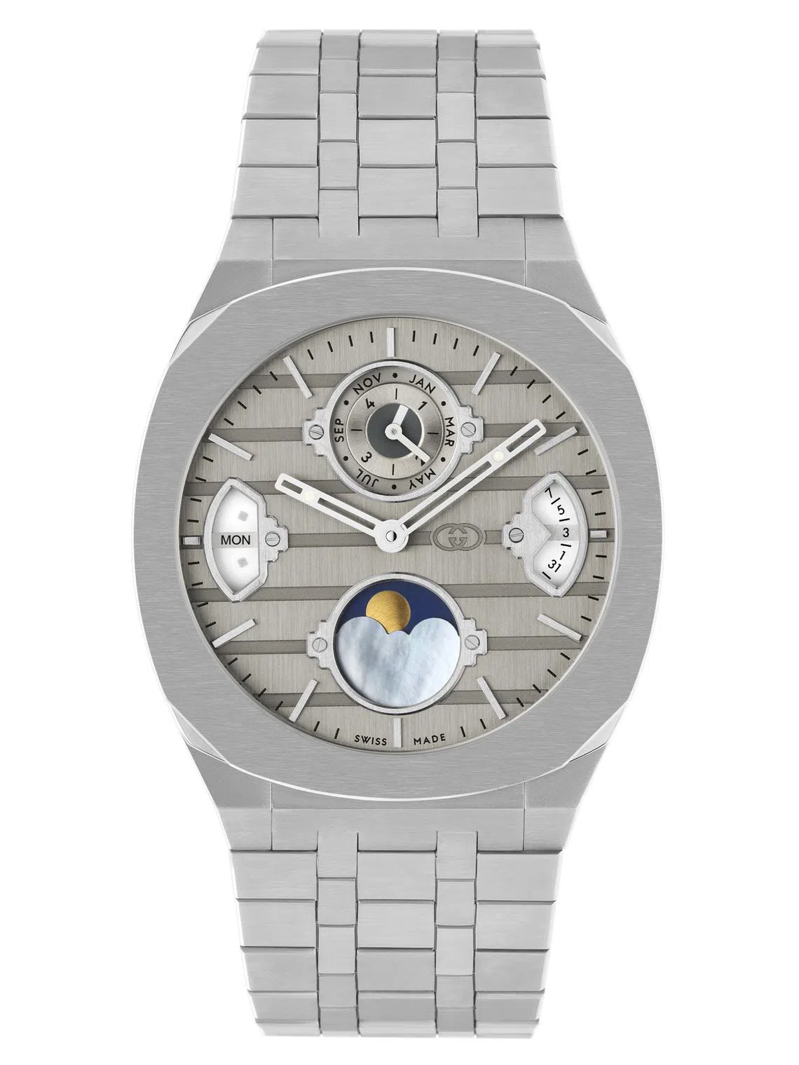 Gucci’s latest runway collections have a bit of everything from sharp suits recalling the Tom Ford-era of the 1990s, to the exuberant styles favoured by its previous creative director, Alessandro Michele. Likewise, the watches run a gamut of design and technical attributes, while collectively expressing a spirit of flamboyance that make them Gucci thoroughbreds.