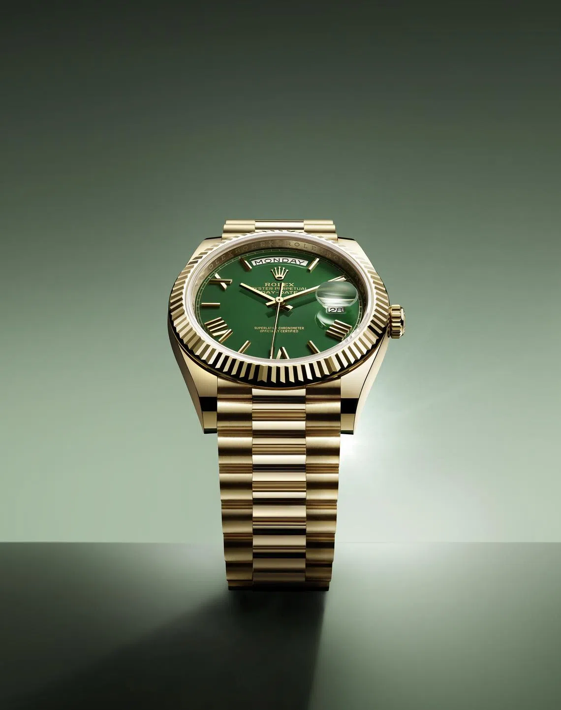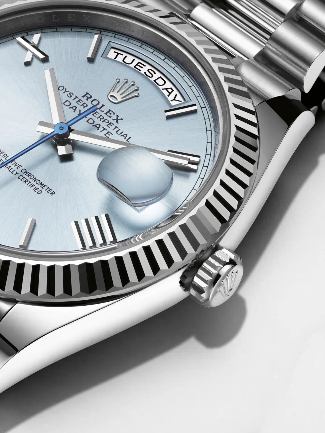 This year, Rolex has further introduced a fluted bezel in platinum for the 950 platinum version of the Day-Date 40 — a first for the brand.