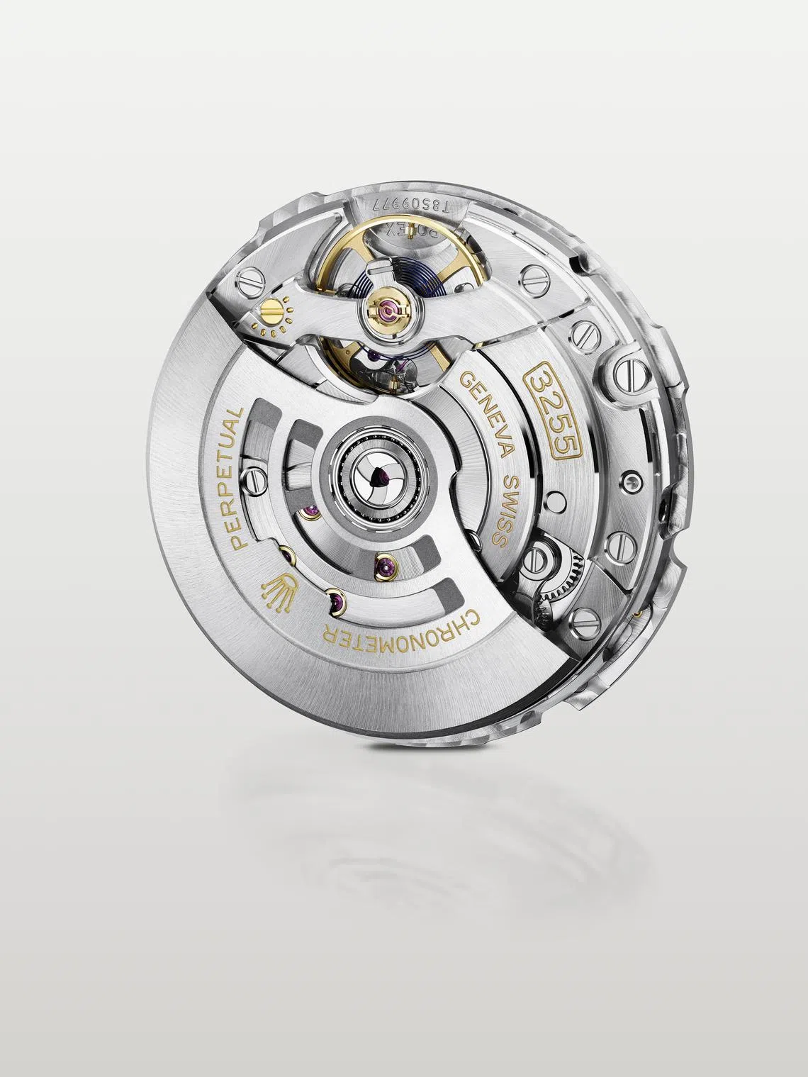 The Day-Date models are powered by a state-of-the-art automatic movement that’s totally developed and made in-house by Rolex. The movement, calibre 3255, is certified by the Swiss Official Chronometer Testing Institute (COSC) as well as Rolex itself for outstanding performance in precision, power reserve, shock resistance, convenience and reliability. It carries a number of patents, including an oscillator fitted on high-performance “Paraflex” shock absorbers.