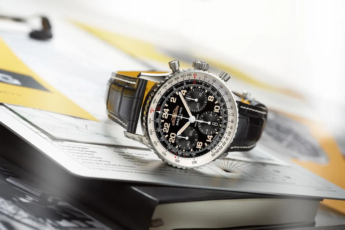 “The watch had been Carpenter’s personal request, a variation on the iconic aviator’s watch he’d encountered in his flight days, but with a 24-hour dial to tell day from night in space,” according to Breitling. The Cosmonaute bears all the hallmarks of the brand’s aviation icon: the circular slide rule for performing mathematical calculations; the Aircraft Owners and Pilot Association “wings” logo; and the trio of chronograph sub-dials. What distinguishes it is its ability to tell 24-hour time. The anniversary watch in stainless steel is almost a replica of the watch on Carpenter’s wrist when he was navigating the space shuttle, save for subtle updates to give it a modern-retro appeal. This includes a platinum bezel, a premium touch that makes the watch even more of a collector’s piece. Engraved on the case-back is “First Swiss wristwatch in space”.