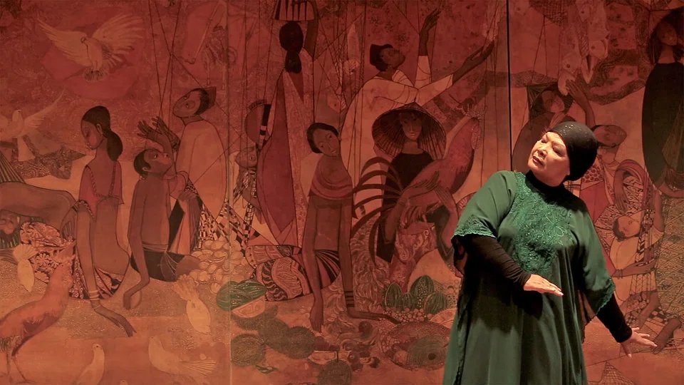 On a long wall running parallel to the ship are 27 black-and-white portraits of mak yong performers. An audio recording of a mak yong master speaking in an ancient Malay dialect plays on a loop. Mak yong is an ancient form of dance-drama with roots in Srivijayan times. Though regarded as one of the last authentic cultural clues to the Malay Archipelago's animistic and Hindu-Buddhist past, it is an endangered art form because Malaysian authorities consider it un-Islamic.