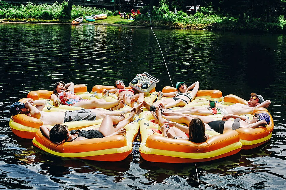 Pool parties and mass gatherings like Coachella are the floatie's natural habitat. In New Jersey, Floats & Boats is a popular festival at Tices Shoal that, as the name implies, celebrates both floats and boats. In a Facebook post, the organisation behind the event, now in its fourth year, encouraged attendees to bring only "really cool" floats, adding that "round tubes and noodles are not allowed unless they are doughnuts or sea monsters of sorts".