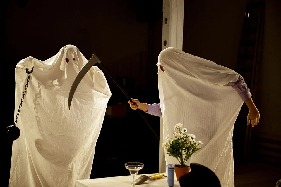 The work's title, Ibsen: Ghosts, evokes the classic 1881 drama Ghosts by Henrik Ibsen, the father of theatrical realism. The pranksters that they are, Markus & Markus have created a non-naturalistic contemporary work that deliberately upends expectations of a slowburn drama. Realism is presented only through the real-life story of Margot on video - all else is conceptual parody.