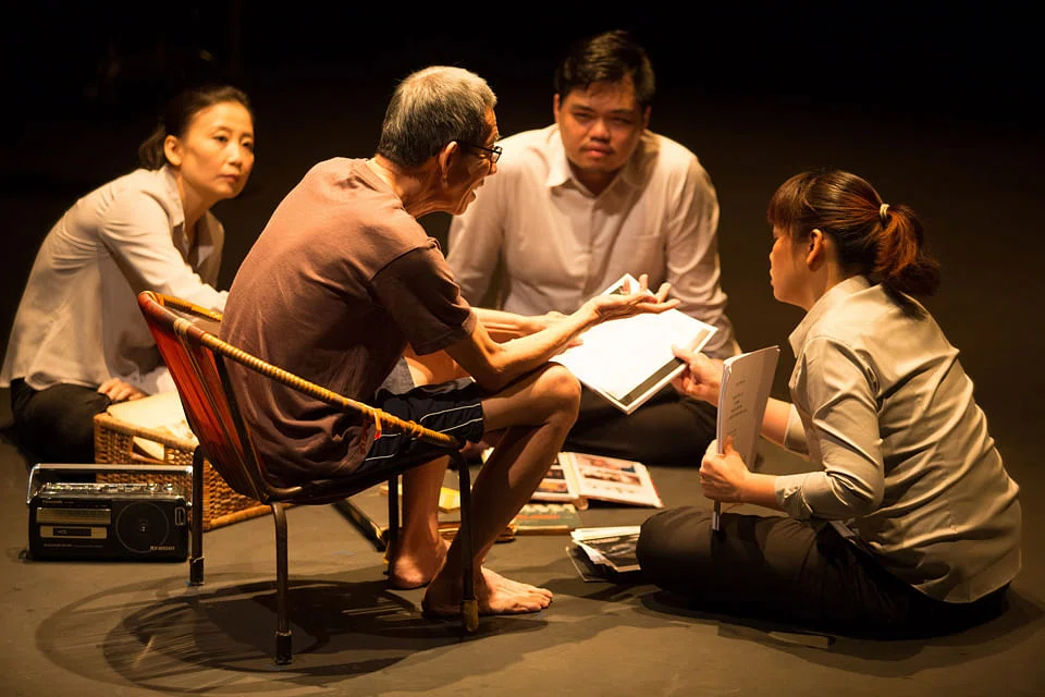 FROM now till Sunday, a theatre in Lasalle College of the Arts appears to be haunted by ghosts. But unlike the scary spooks in horror movies, these are melancholy, mournful ghosts, too haunted by their own past to scare anyone else. They move about the space slowly, peering into the dark empty spots. They listen quietly to scratchy records from a bygone era. And they like to replay scenes from a banned play written 46 years ago.