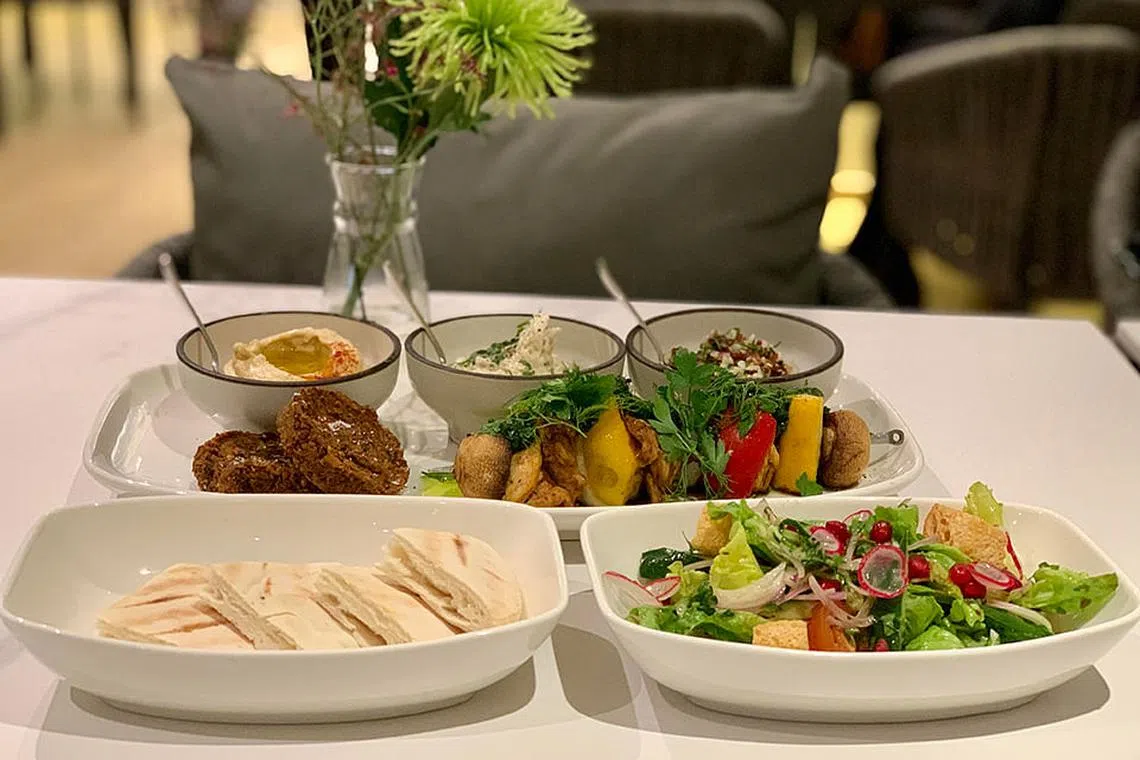 The mezze plate (S$34) is pretty. A salty creamy hummus, better smoked eggplant purée with lashings of olive oil and sharp quinoa tabbouleh come with dryish pita bread for dipping. Two discs of falafel could do double duty as hockey puck or quick snack for the goalkeeper. A serviceable chicken skewer and sweet-sharp fattoush salad round off this so-so platter.