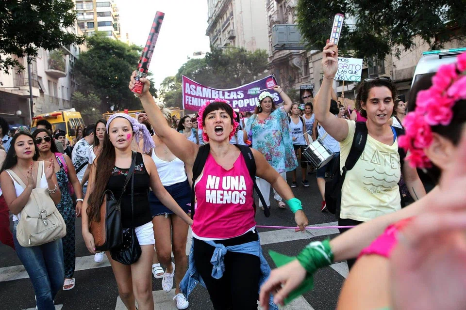 [BUENOS AIRES] Tens of thousands took to the streets of Buenos Aires and capital cities across Latin America Thursday to mark International Women's Day and protest against gender-based violence.