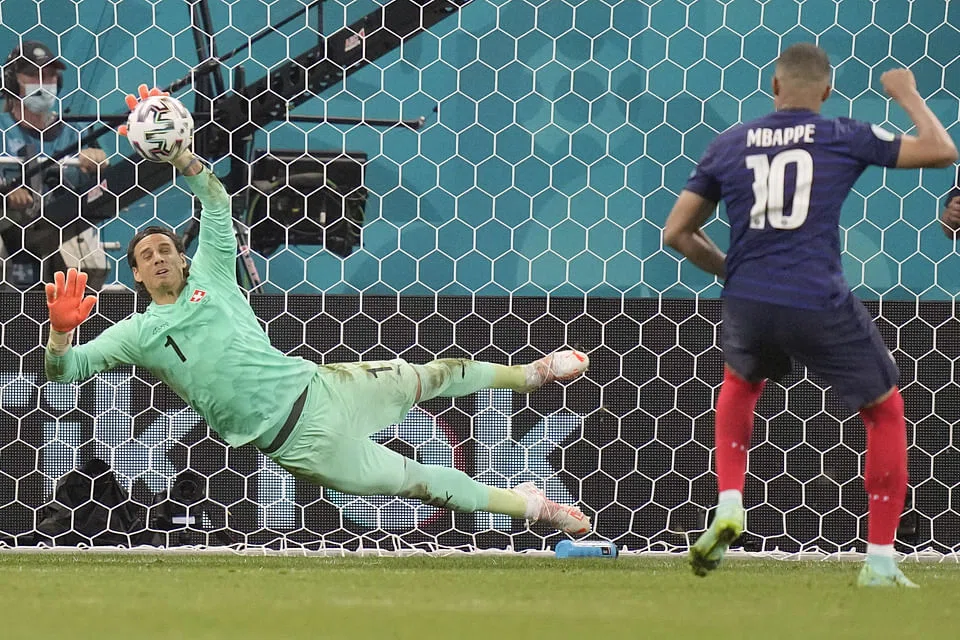 After nine successful spot kicks in a row, it was France's golden boy - the 22-year-old Kylian Mbappe - who saw his effort saved by Swiss goalkeeper Yann Sommer.