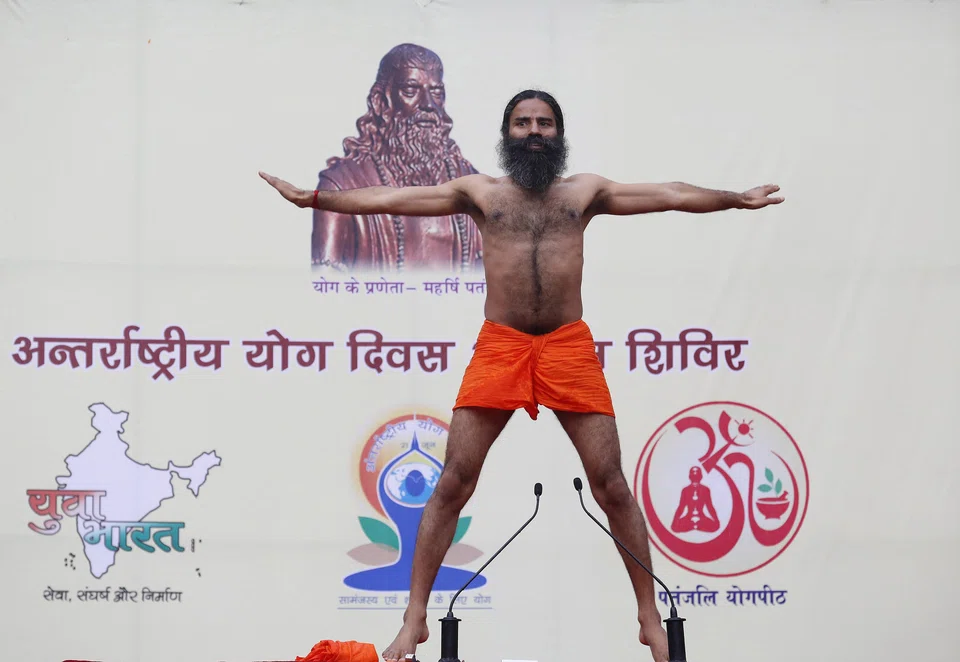 Baba Ramdev, who says his foundation earns 20 billion rupees (S$418 million) a year selling traditional products, will help Prime Minister Narendra Modi on Sunday set a world record for the most people doing yoga in one place. The event will mark the first United Nations-backed International Day of Yoga.
