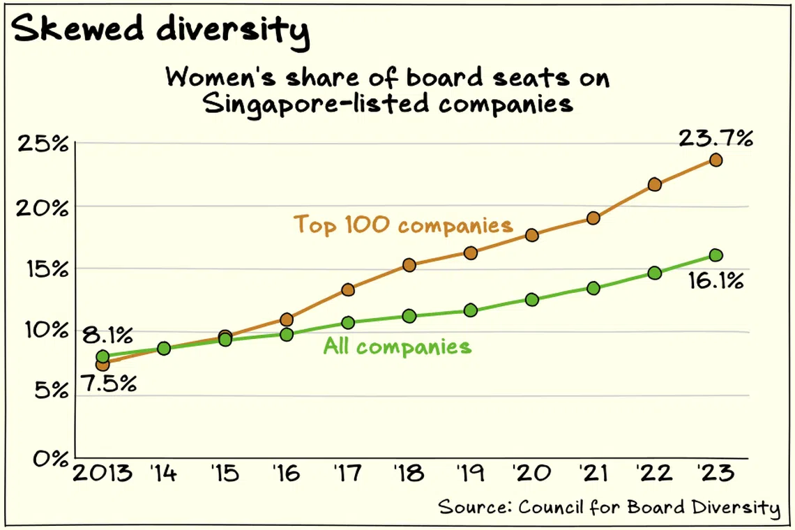 The elusive quest for gender parity among the boards of Singapore-listed companies has drawn a call for a new strategy: Search better.
