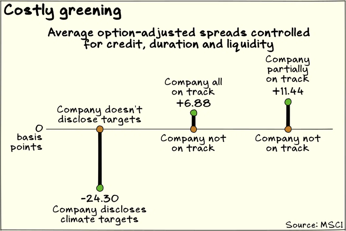 If you run a bank, a restaurant, an IT firm or any other business that isn’t in an emission-intensive sector, here’s one way to lower your borrowing costs: Set a climate target, then forget about it.