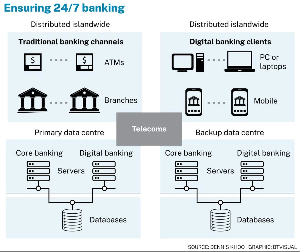 When it comes to banking, the key difference is that there are multiple components, likely located in different geographical locations, that must be switched over in tandem for redundancy to work.