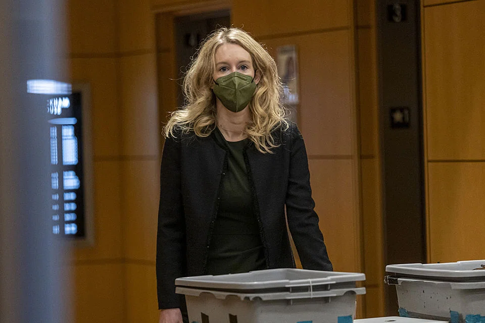 But now that she is facing a jury of her peers, she doesn't look like the first coming of the female Steve Jobs. She enters the court holding hands with her mother and boyfriend, dressed in attractive but not necessarily trendy business attire, usually a skirt suit, and with low heels.