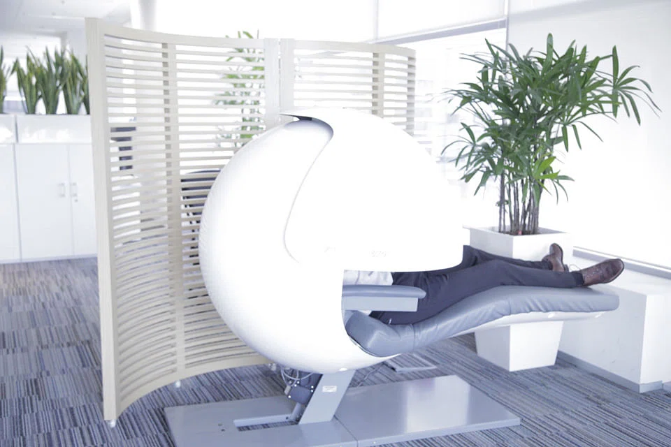 SAP Asia was one of the first companies in Singapore to install an actual nap pod in the office back in 2010, says Jairo Fernandez, senior vice-president of HR at SAP Asia Pacific Japan. It is placed in a quiet corner of the office and fitted with a helmet-like dome for privacy.