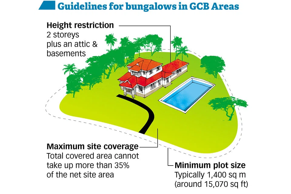 A site coverage control - total covered area as a percentage of the net site area - of 35 per cent applies to bungalows in GCBAs. This is lower than the general site coverage limit for bungalows in non-GCBAs, which is typically 40 per cent.
