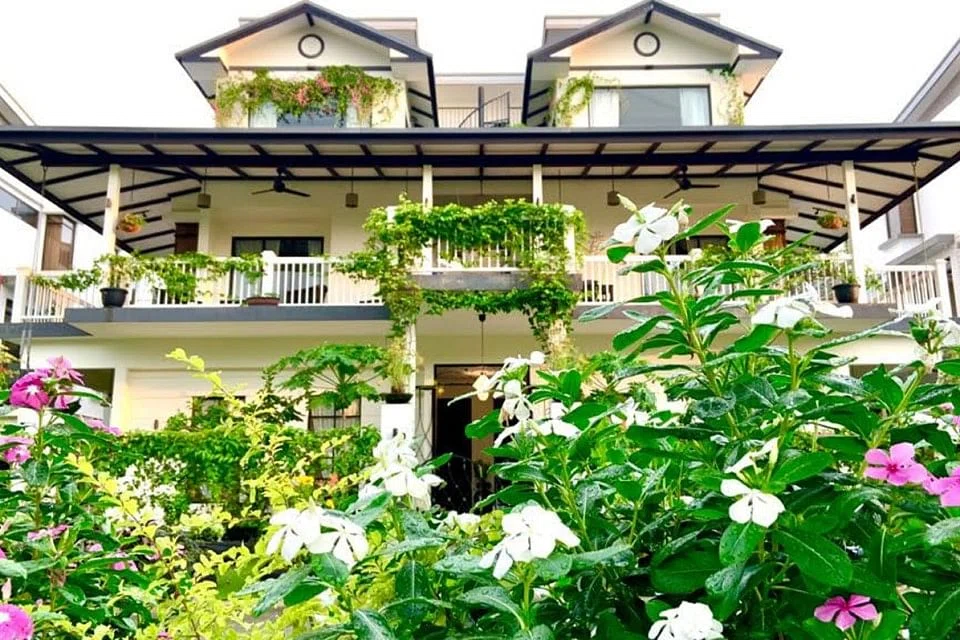Seven years ago, the 52-year-old, who works for a book-keeping and software company, moved to his self-designed Tuscan-styled home in a freehold gated township that boasts a 200-acre (81-hectare) golf course in Malaysia's southern tip Johor. His villa of 2 semi-detached units merged into 1, with 6 large ensuite rooms, rests on 6,000 square feet of land at a cul-de-sac and fronts a dreamy large pond where pink water lilies float and shelter fish, which are in turn magnets for storks and otters. From their colonial-style balcony that wraps around their abode, he and his Penang-born wife Jen often take in the breath-taking sunset and sunrise over the hills to unwind or simply to "be present".