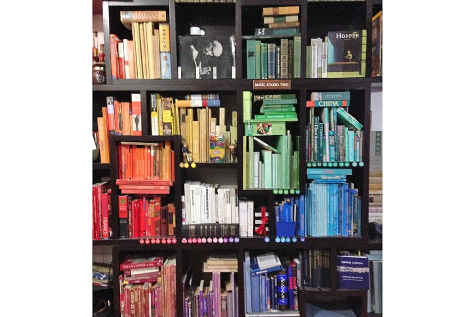 Mr Shinners turned obsessive with colour, as his bookshelf showed. Each title - be it on Lao Tzu, or Edward Hopper - stood erect next to another not by theme, but by its colour's gradient. He suspects he has been picking books that are colour-matched all his life, though there is a small pile of books that have been ostracised for the colour of their skin.