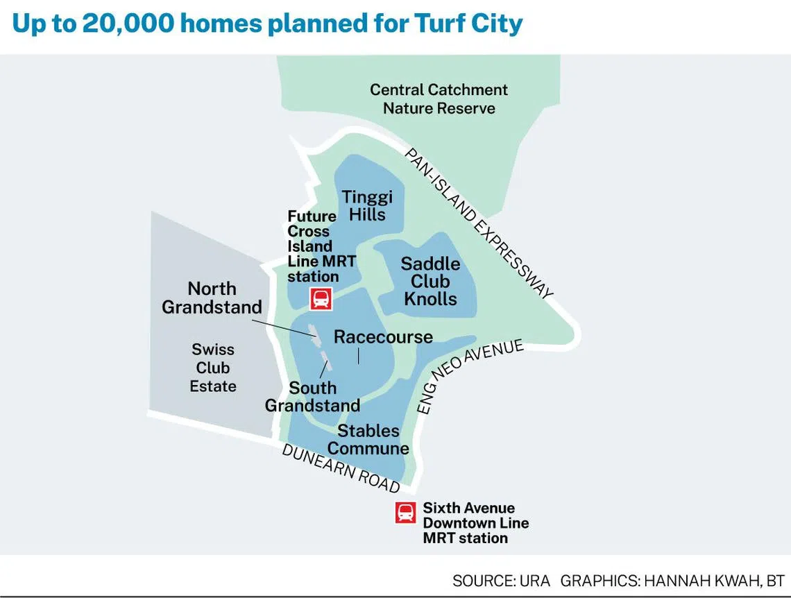 The 176-hectare Turf City plot sits among some of Singapore’s most prime residential real estate, facing multimillion-dollar houses in the GCB areas of Swiss Club Road and Binjai Park