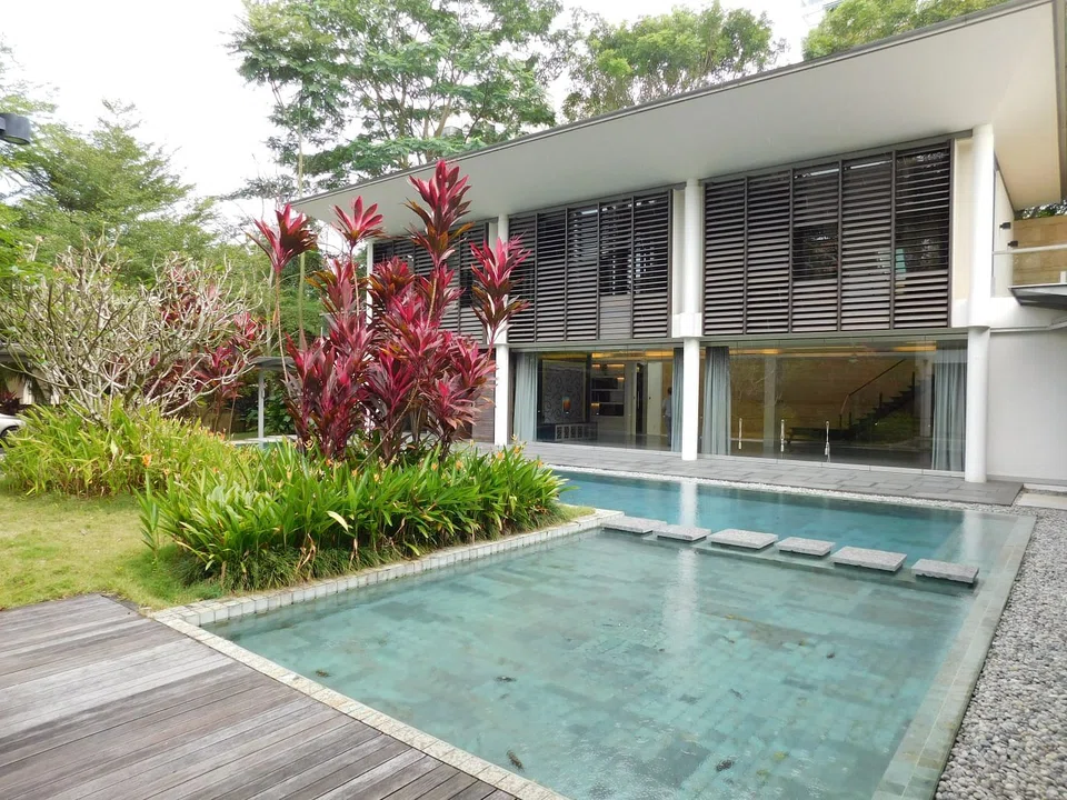 The freehold, two-storey property has a pool, a large basement entertainment area, as well as parking space for several cars. It is about eight minutes' walk from the Holland Village MRT station.