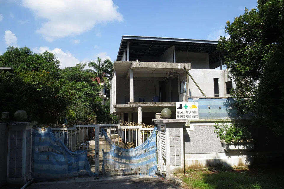 A PARTIALLY completed Good Class Bungalow (GCB) at 15 Binjai Rise, located next to the noisy Pan Island Expressway, has finally been sold - after two rounds of auctions and a tender.