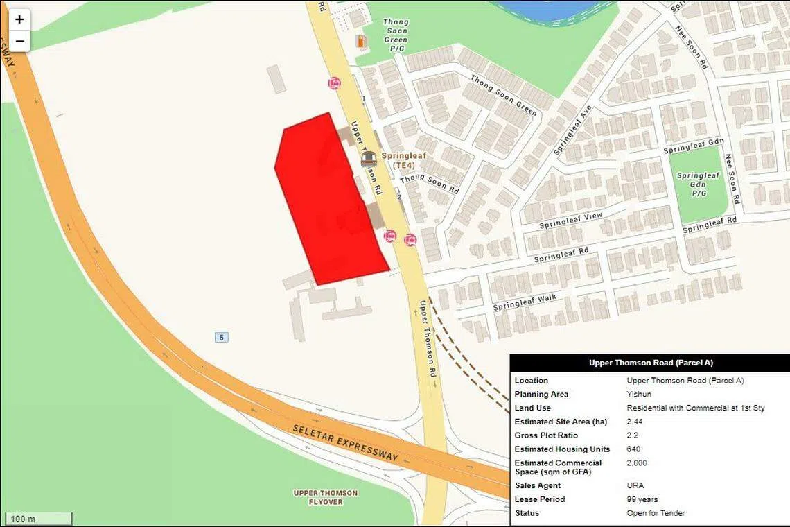 The other site, a parcel at Upper Thomson Road, would yield 640 residential units including 100 serviced apartments, in an area being developed as a new housing precinct.