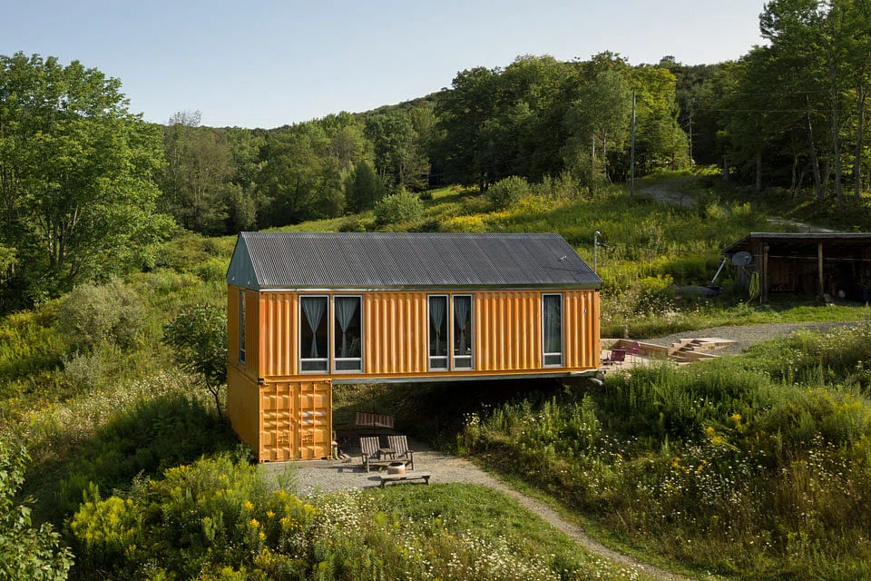 TIM Steele stood outside a pair of orange shipping containers on a hillside about two hours north-west of New York City. The large metal cargo door swung wide to reveal a small mudroom inside the corrugated walls, and beyond that an expansive living room, kitchen and small bathroom. Several tall windows looked out on the Catskill Mountains, a vista that stretched for miles.