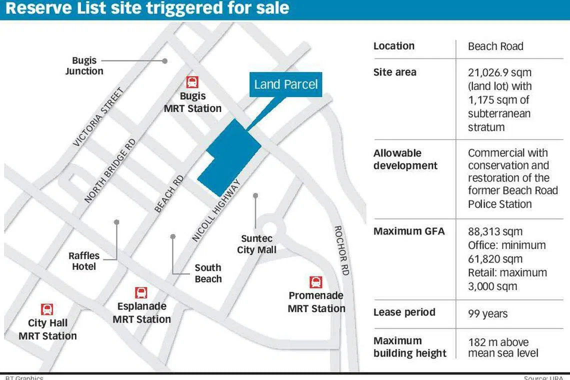 The Beach Road site was first made available for sale on the GLS Reserve List in November 2014. URA said the public tender will be launched in about two weeks with a tender period of 12 weeks.