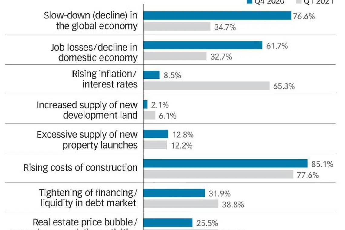 Of the approximately 50 such executives surveyed in March, 87.8 per cent indicated the possibility of cooling measures as a potential risk which may hit market sentiment in the next six months. This is almost double the previous quarter's 44.7 per cent.