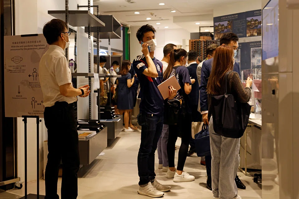 On one of the early days of the launch, organisers stopped people queuing from 11.30 am local time as lines extended from a show flat to a footbridge outside despite social distancing concerns.