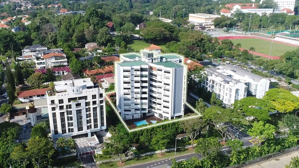 The freehold, nine-storey building comprises 32 apartment units on 4,103.1 square metres, or 44,165 square feet, of land off Bukit Timah Road. The site is zoned "residential" under the Urban Redevelopment Authority's Master Plan 2014, and may be built up to 1.6 times the site area, also known as the plot ratio. There is a 12-storey height control on the site.