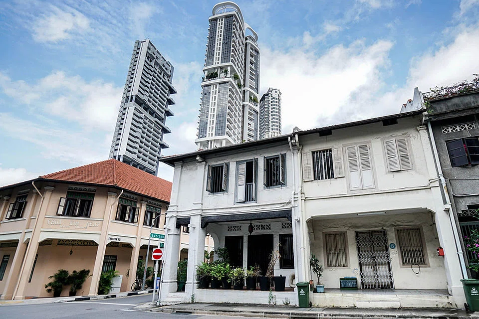 The two-storey corner shophouse has an attic and is situated in the Blair Plain conservation area.