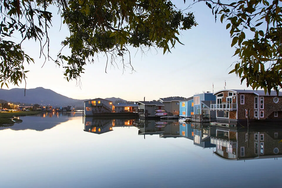 The community is so serene that geese and otters also call it home. And yet it's only a 30-minute ferry ride to San Francisco, and downtown Sausalito is a 10-minute drive away. There is an ice cream shop, an organic grocery store, a seafood restaurant and a quaint cafe - all within walking distance.