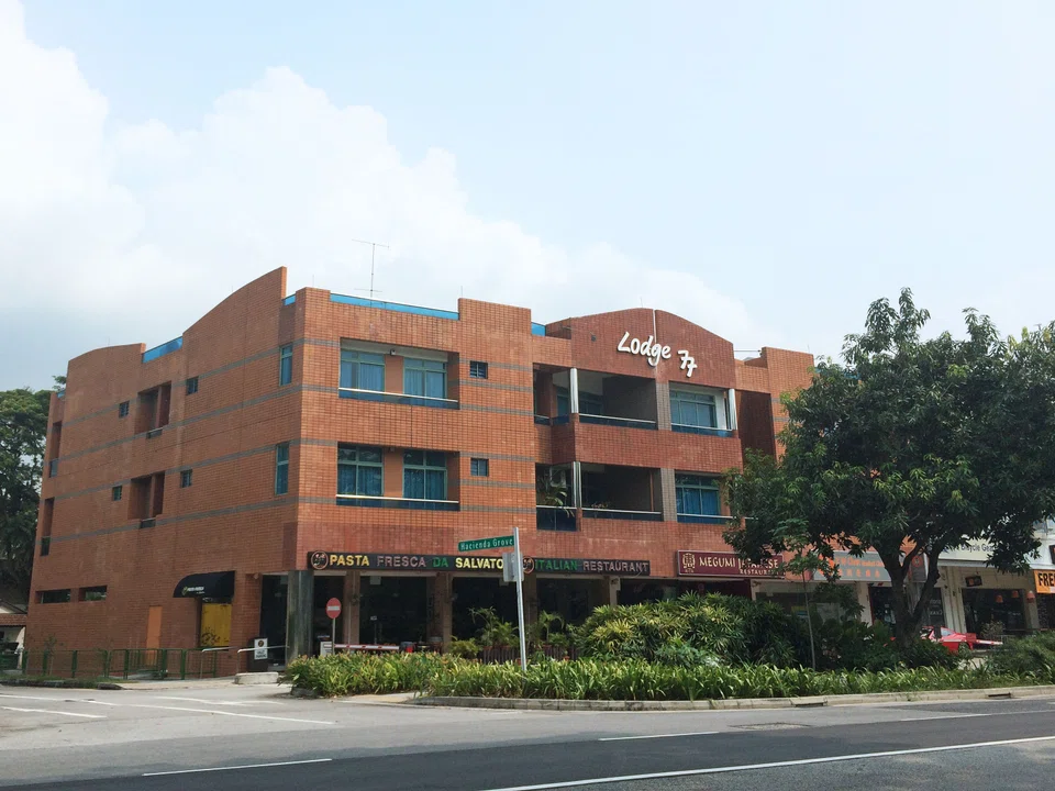 Lodge 77 is a three-storey residential development with two F&B establishments and a clinic on the first storey. It has a land area of 1,219.2 square metres.