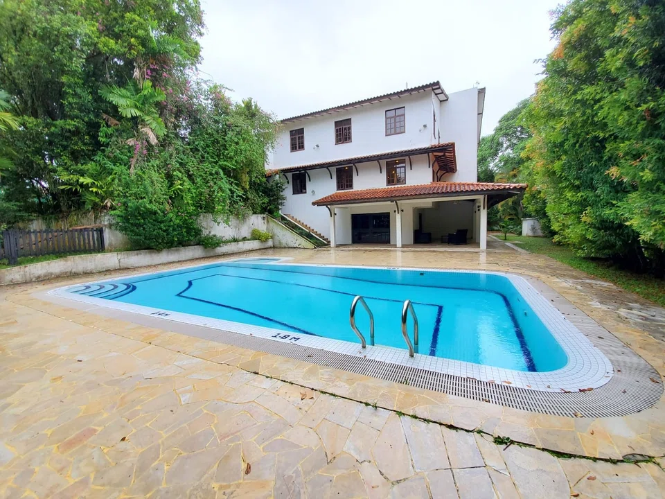 The two-storey bungalow houses five bedrooms, a basement and a swimming pool.