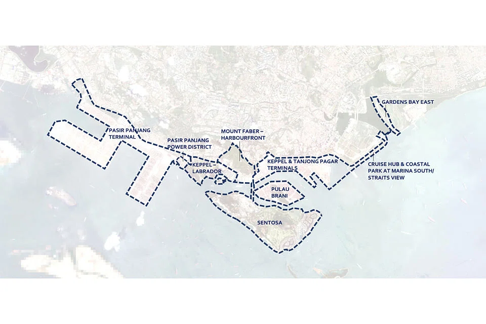 Under the Draft Master Plan 2019, the Greater Southern Waterfront - which stretches across the southern coastline from Pasir Panjang to Marina East - will total 2,000 hectares (ha) and is envisaged to be a gateway for live, work and play. About 1,000 ha of land from the 2,000 ha site will be freed up for development after the City Terminals and Pasir Panjang Terminal are shifted to Tuas.